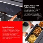 1) ظرفیت بزرگ: سرخ کن دیجیتال ۱۱ لیتری با روکش نچسب که برای تهیه غذای خانوادگی مناسب است و می توان آن را در دو سبد ۵.۵ لیتری با جداکننده تقسیم کرد تا لذیذترین غذاها و تنقلات را بدون روغن و حداکثر ۸۰ درصد چربی کمتر برای پخت غذای کاملا پخته، سالم و کم چرب بدون روغن برای کل خانواده ایده آل است.