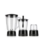 بسته بندی شامل یک مخلوط کن کامل ۸۰۰ واتی، ظرف خمیر ۲ لیتری، ظرف مخلوط کن ۱.۵ لیتری، ۱.۱ آبمیوه گیری، شیشه خردکن گوشت و شیشه قهوه است
