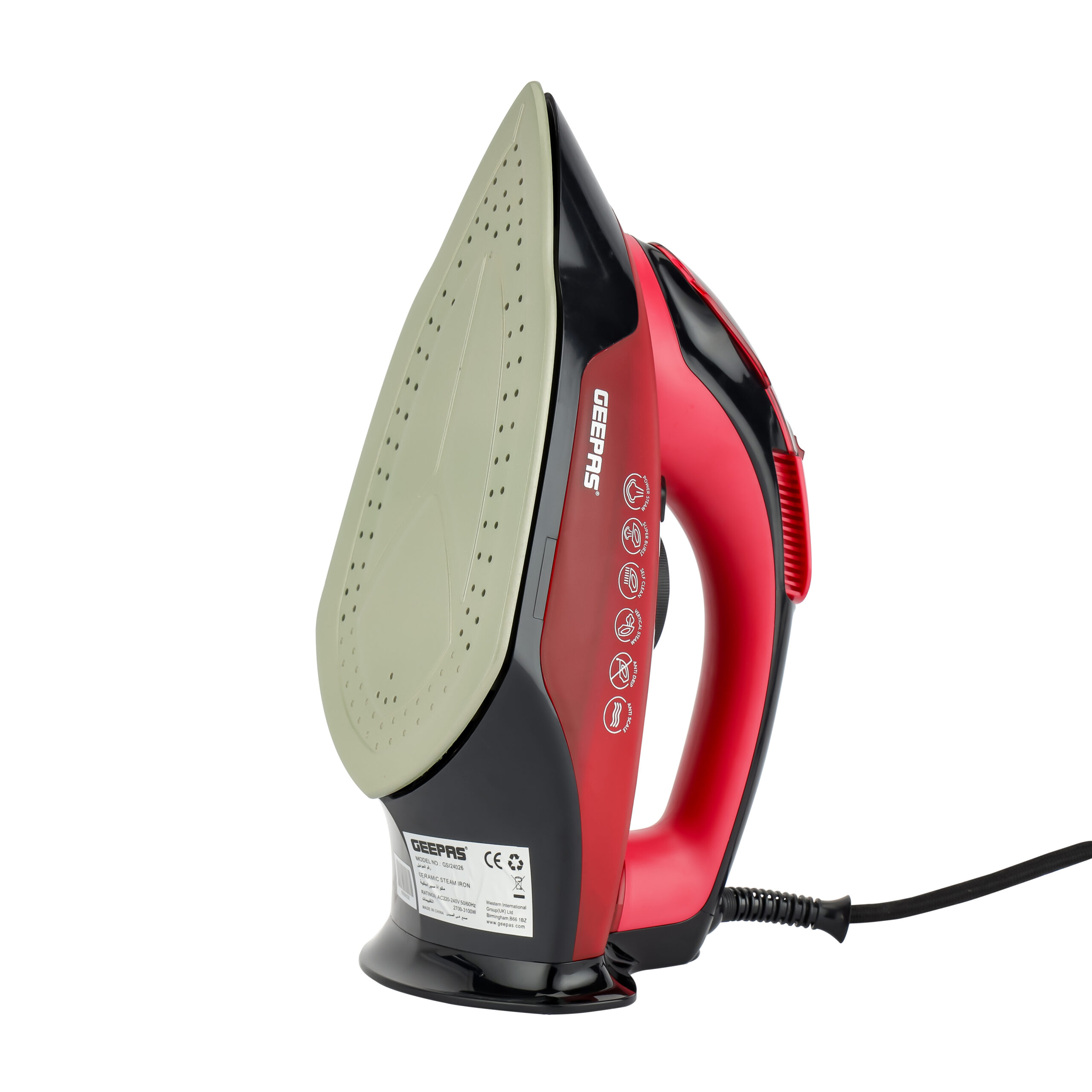 اتوی عمودی کفی بسیار بزرگ خود تمیز شونده با روکش سرامیکی در کفی خود با ضد کلک و کلاس برای طول عمر سریعتر و عملکرد ضد چکه اتو اتوی صاف| GSI24026