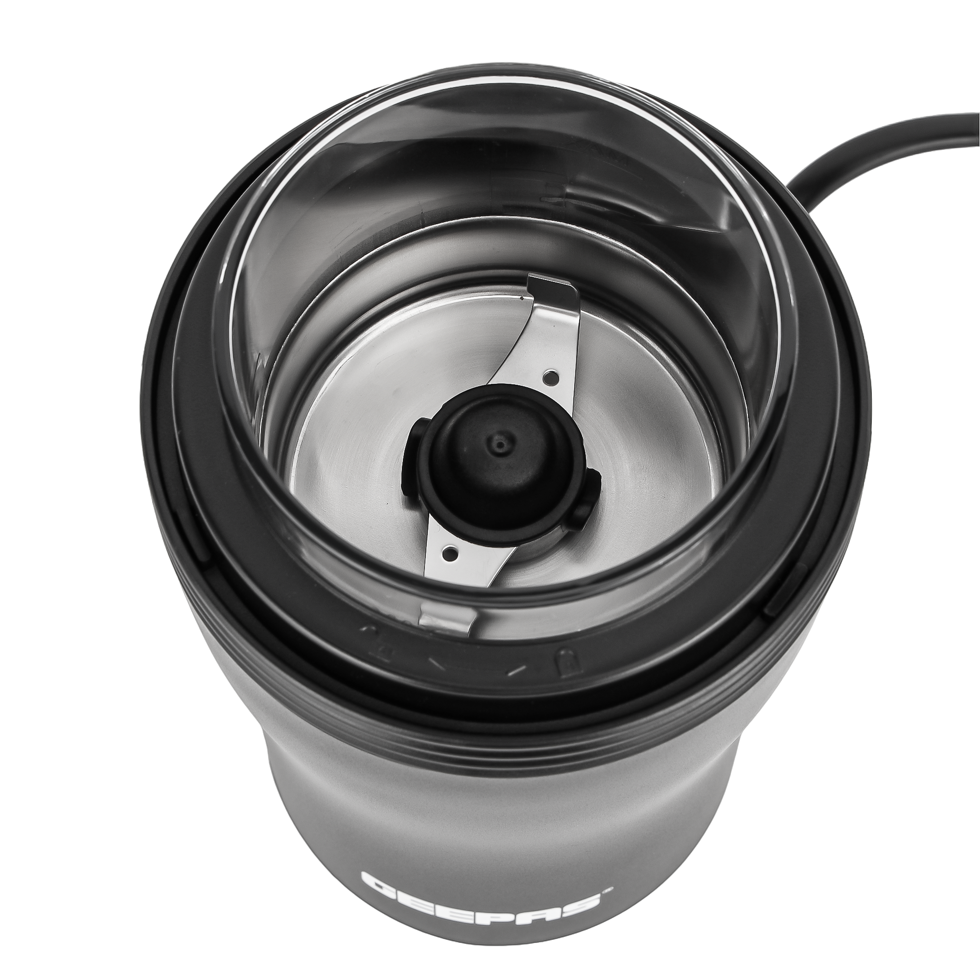 تیغه استیل ضد زنگ| ظرفیت ۴۰ گرم کلید روشن/خاموش با فشار ملایم ظرف| آسیاب قابل جدا شدن| موتور قدرتمند ۱۵۰ واتی