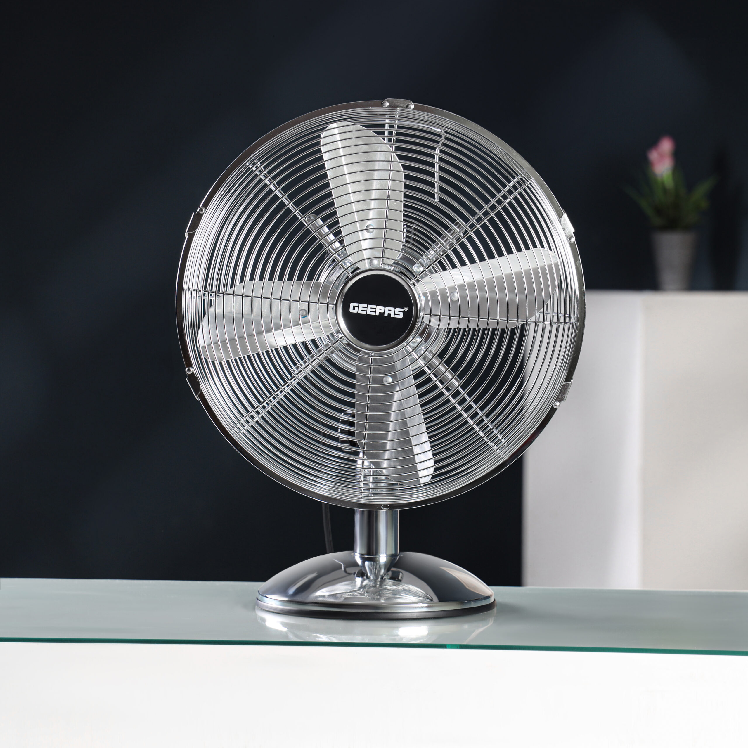 پنکه فلزی رومیزی 12 اینچی | 35 وات | 3 تنظیمات سرعت با ویژگی نوسانی چرخشی و استاتیک | 4 عدد تیغه آلومینیومی | فن خنک کننده رومیزی قابل حمل برقی برای استفاده خانگی یا اداری میز | GF9610