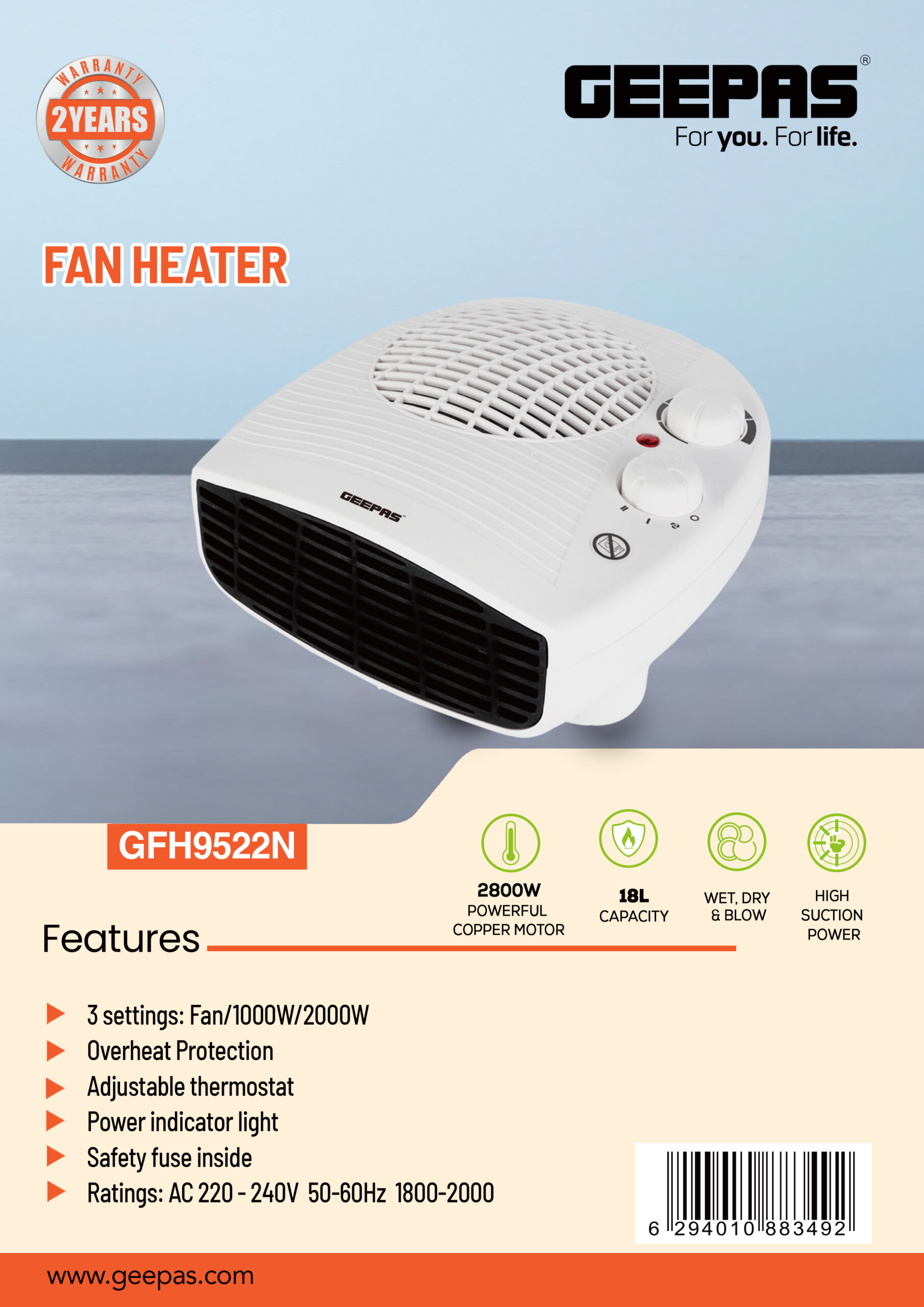 با بخاری فندار Geepas GFH9522، اتاق خود را در هوای سرد، دنج و راحت نگه دارید. این بخاری جمع و جور و کارآمد، سه حالت گرمایش (فن/۱۰۰۰ وات/۲۰۰۰ وات) را برای راحتی شخصی ارائه میدهد. ترموستات قابل تنظیم آن، دمای ایدهآل را تضمین میکند، در حالی که محافظت در برابر گرمای بیش از حد و فیوز ایمنی داخلی، عملکرد ایمن را تضمین میکنند. این بخاری که به یک چراغ نشانگر روشن بودن مجهز است، به شما اطلاع میدهد که چه زمانی روشن است. جمع و جور، قابل حمل و استفاده آسان – مناسب برای اتاق خواب، دفاتر و فضاهای کوچک.