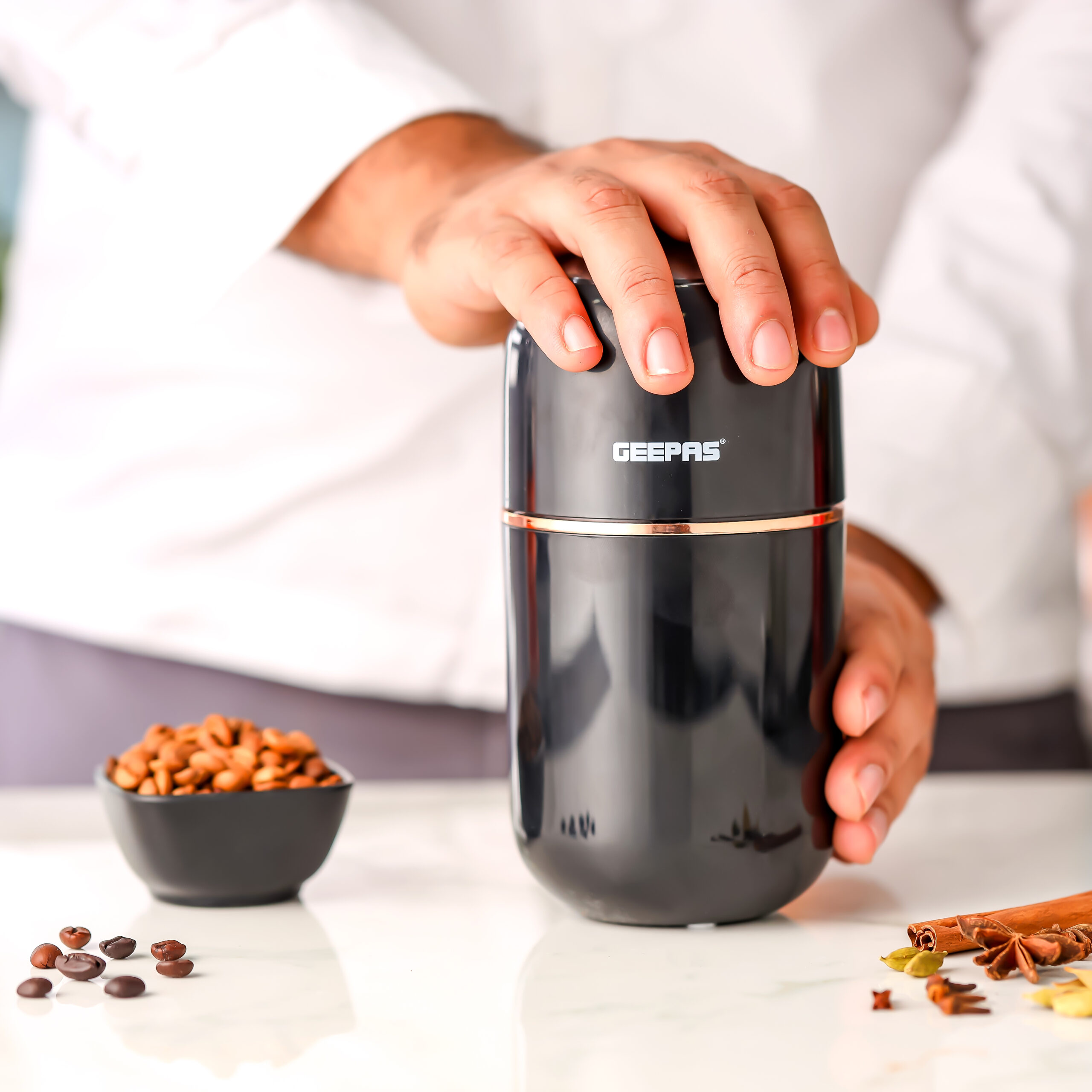 • تیغه فولادی ضد زنگ: آسیاب قهوه Geepas با یک کاسه و تیغه فولادی ضد زنگ، یک محفظه ABS ساخته شده است و مواد را از طریق چرخش سریع خرد می کند.