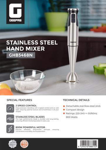 قدرتمند ۸۰۰ وات با موتور قدرتمند ۸ آمپر DC، ترکیبی کارآمد را تجربه کنید. وای، چه باحال! تیغه استیل ضد زنگ. تیغه با کارایی بالا، بادوام و بادوام است و آمادهسازی کارآمد غذا را در هر بار استفاده تضمین میکند. میله استیل ضد زنگ قابل جدا شدن. مخلوط کردن یکپارچه با میله استیل ضد زنگ قابل جدا شدن که به راحتی تمیز میشود و بادوام است. کنترل ۲ سرعته. با کنترل ۲ سرعته و چراغ LED از ترکیب دقیق لذت ببرید و بافت و نرمی بهینه را در تمام دستور العملهای خود تضمین کنید. طراحی جمع و جور باعث صرفهجویی در فضا میشود. بستهبندی و نگهداری آسان پس از استفاده.