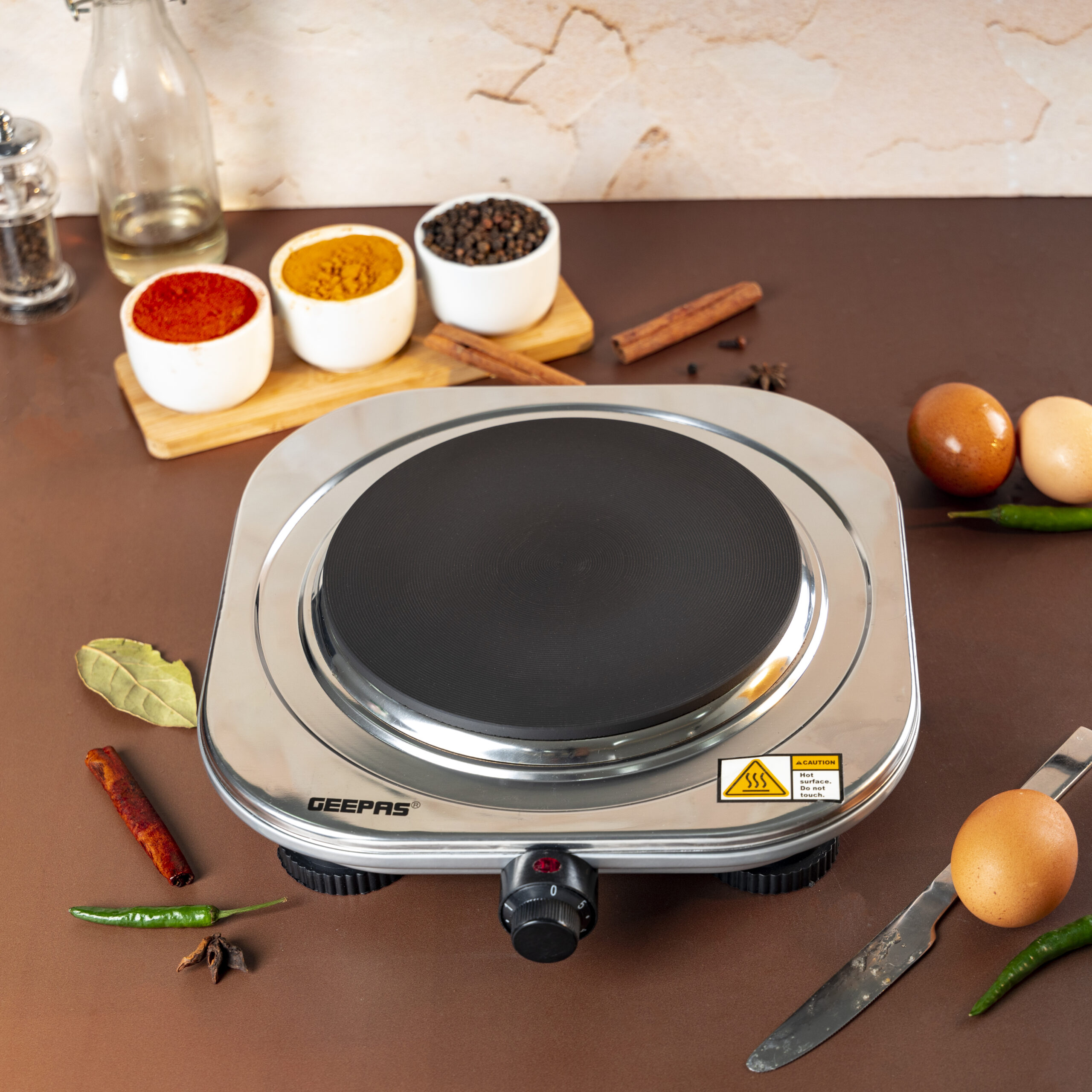 b”ما برای تولید محصولات به ایده کیفیت بالا، ایمنی و قابل حمل بودن پایبند هستیم و با بهترین خدمات برای هر خانواده مزایایی را به ارمغان می آوریم. صفحه داغ ۱۵۰۰ واتی Geepas دارای تنظیمات حرارتی متغیر است که طیف وسیعی از گزینه های مختلف پخت و پز و گرم کردن را ارائه می دهد. از یک پایه فولادی ضد زنگ ساخته شده است که برای کمپینگ و مسافرت مناسب است، زیرا می توان آن را به راحتی جابجا کرد و شکل و طراحی آن نیز به این معنی است که تمیز کردن آن آسان تر است صفحه داغ دارای محافظ گرمای بیش از حد است، به این معنی که در صورت رسیدن به دمای بیش از حد، به طور خودکار خاموش می شود تا از هر گونه حادثه ای قبل از وقوع جلوگیری کند. یک نشانگر قدرت نئون نیز در قسمت جلویی صفحه گرمایش وجود دارد که نشان می دهد صفحه گرمایش کوچک و فشرده برای ذخیره سازی آسان است سطح فولادی ضد زنگ بادوام است، به راحتی تمیز می شود و می تواند استفاده طولانی مدت را تحمل کند.”