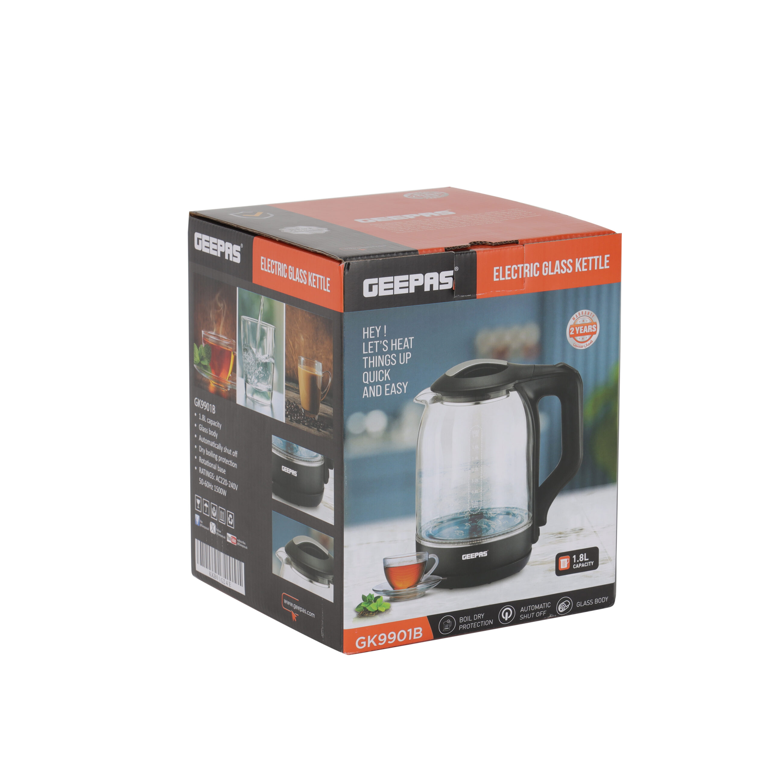 ظرفیت ۱.۸ لیتر| محافظ در برابر جوش آمدن و خشک شدن| خاموش شدن خودکار| بدنه شیشهای| GK9901B
