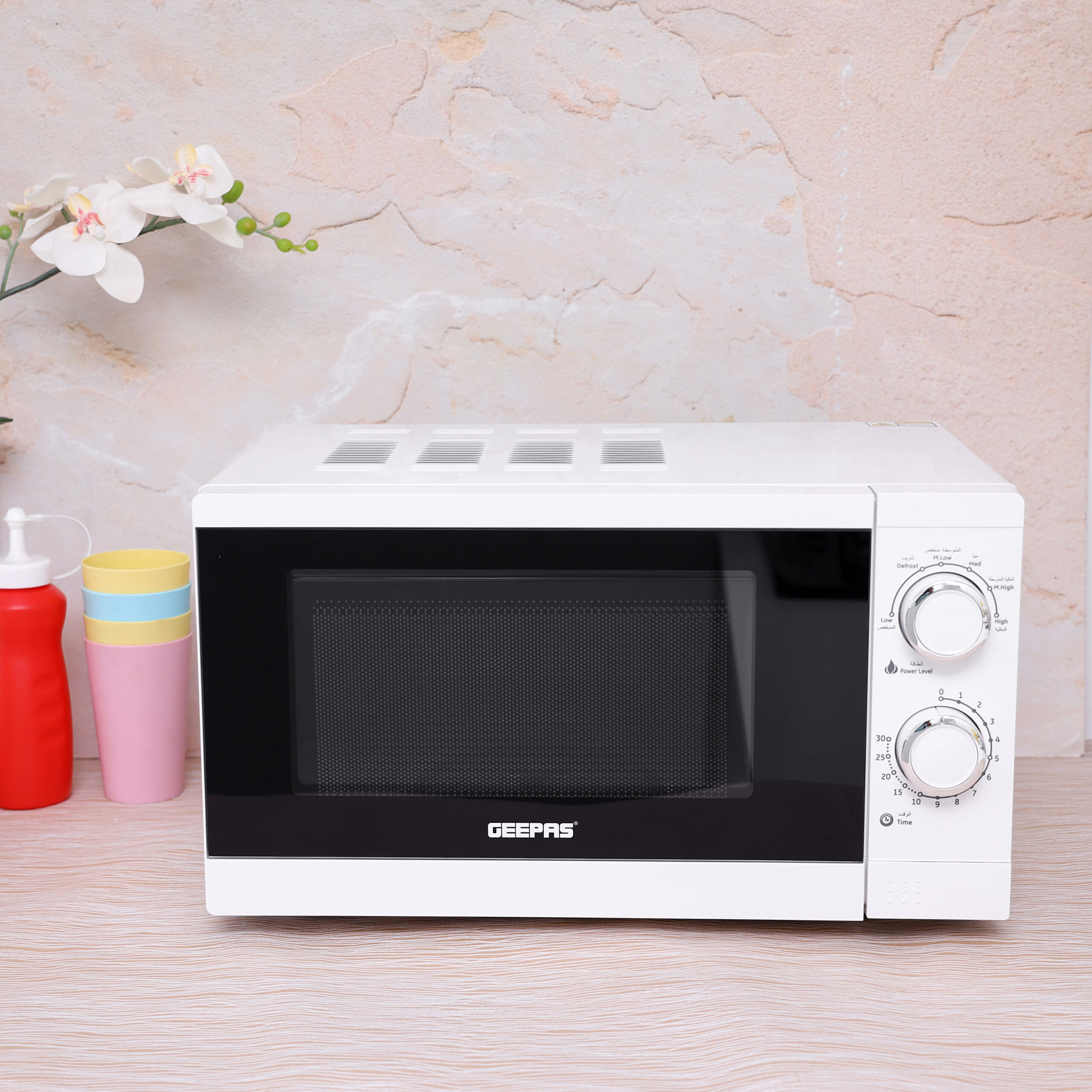 مایکروویو  20 لیتری – GMO1894| مایکروویو 1200 واتی سولو با 6 سطح قدرت و تایمر | کنترل قدرت پخت و پز با 2 صفحه چرخشی و تنظیمات برفک | سفید