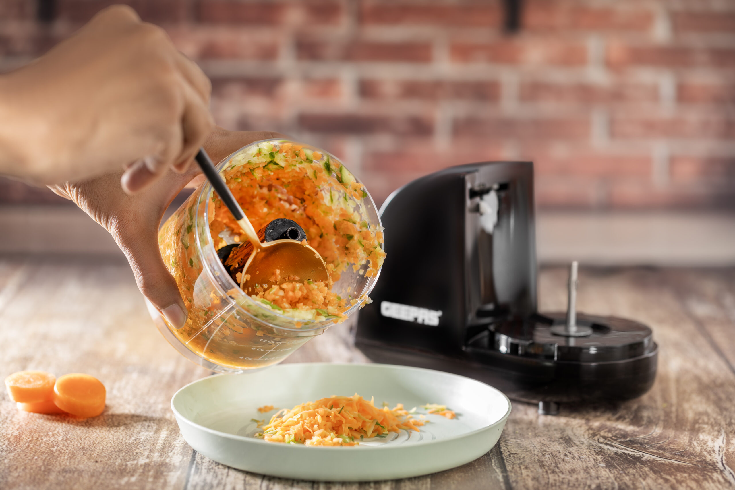 کاسه خردکن ۳۵۰ میلی لیتری • کنترل یک سرعت • موتور DC با قدرت بالا • تمیز کردن آسان • عملکرد چرخ کردن، خرد کردن درشت تا ریز ریز • رتبه بندی: AC220-240V 50-60Hz 100W