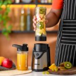 ۱) موتور قدرتمند: قدرت ۵۰۰ واتی این مخلوط کن شخصی به شما امکان می دهد با میوه ها و سبزیجات سخت کنار بیایید، و آن را برای ایجاد نوشیدنی ها و اسموتی های مغذی سریع، آسان، ایده آل در حال حرکت – به سادگی بارگیری کنید، مخلوط کنید و بروید!