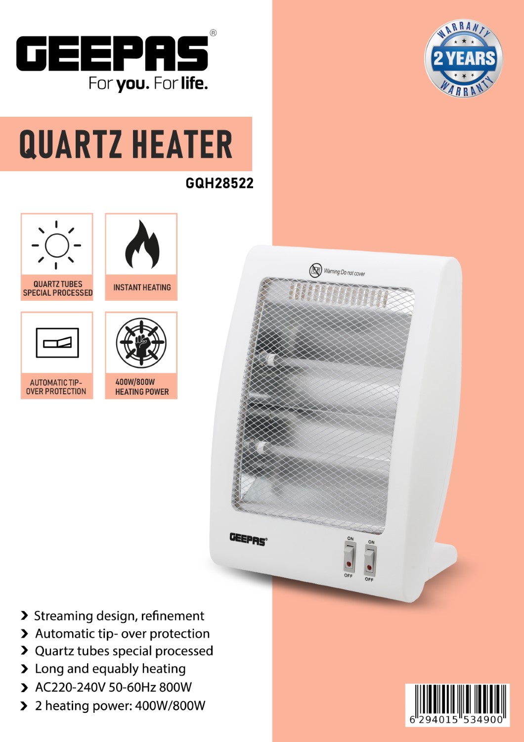 با بخاری کوارتز Geepas GQH28522 از گرمای سریع و کارآمد در روزهای سرد لذت ببرید. این بخاری جمع و جور اما قدرتمند که با لولههای گرمایش کوارتز پیشرفته طراحی شده است، گرمایش فوری را در عین حفظ ایمنی و دوام فراهم میکند. محافظت خودکار در برابر واژگونی آن، آرامش خاطر را تضمین میکند و تنظیمات دوگانه قدرت (۴۰۰ وات/۸۰۰ وات) به شما امکان میدهد تا خروجی گرما را مطابق با سطح راحتی خود تنظیم کنید. بخاری کوارتز Geepas که برای اتاق خواب، دفاتر کوچک یا استفاده شخصی مناسب است، عملکرد، ایمنی و طراحی مدرن را برای گرمای قابل اعتماد زمستانی ترکیب میکند.