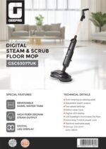 مشخصات فنی: پدهای شستشوی چرخشی دوقلو، خروجی بخار قابل استفاده/استفاده، دو سرعته، مخزن آب ۵۴۰ میلی‌لیتری، نمایشگر LED دیجیتال، چراغ LED جلو، کف را روشن می‌کند، قدرت اضافی ۷ متر مکعب، پدهای قابل شستشو با ماشین لباسشویی، توان: ۲۲۰-۲۴۰ ولت، ۵۰HE، ۱۳۸۰ وات