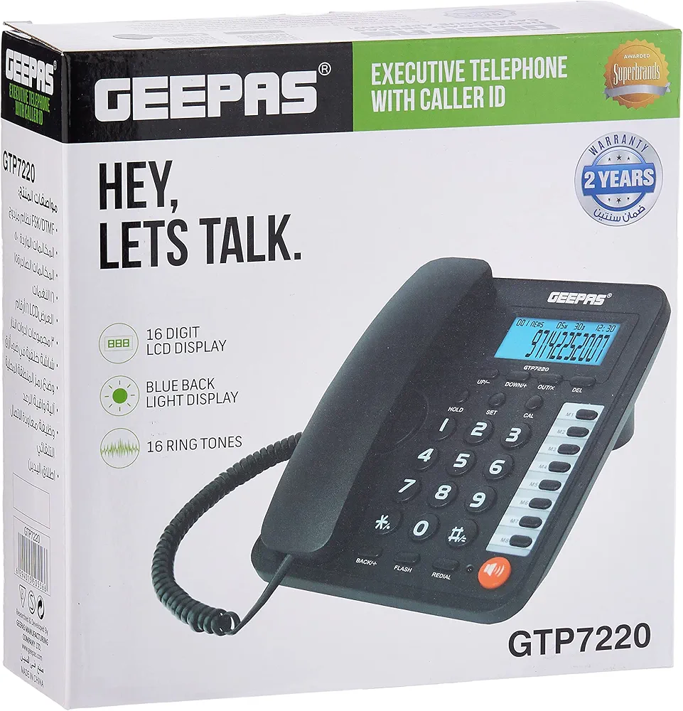 تلفن اجرایی Geepas با شناسه تماس گیرنده کیفیت ساخت جامد و طراحی کلاسیک| عملکرد هندزفری و شماره گیری مجدد خودکار| GTP7220